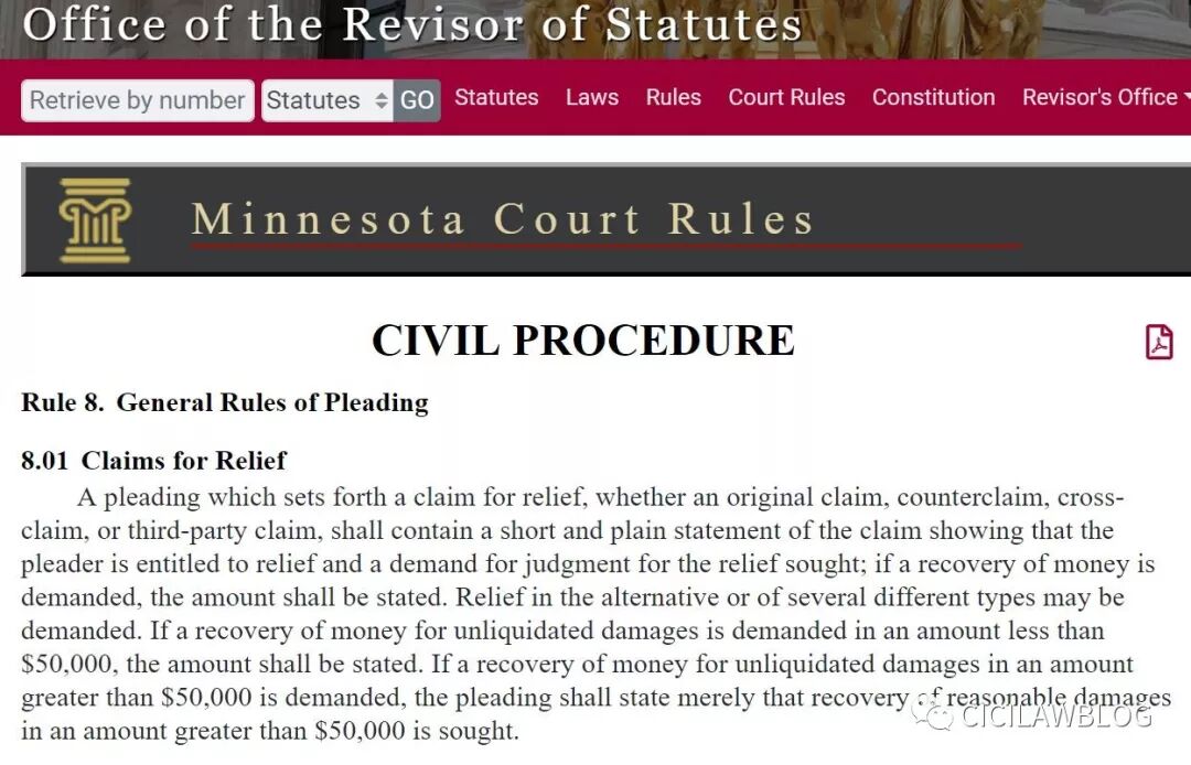 不需要联想过多,因为根据明尼苏达州民事诉讼法规定,如果索赔5万元一下需要明确说明索赔数额,如果索赔超过5万美元,那么起诉书中只写5万美元(或以上)即可。在案子初始阶段,原告律师没必要写一个天文数字来吸引眼球,给原告带来不必要的负面效应。